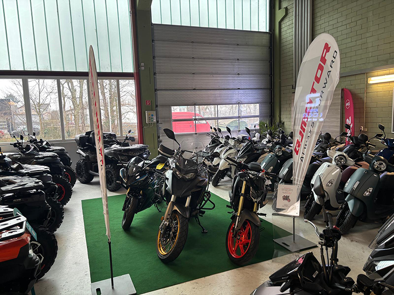 Neben unserem umfassenden Werkstattservice bieten wir den Verkauf von Neu- und Gebrauchtfahrzeugen an. Dazu zählen Roller, Motorräder und Quads der Marken CFMOTO, SYM und QJ Motor. Attraktive Finanzierungsmöglichkeiten über unseren Partner Santander runden unser Angebot ab.
